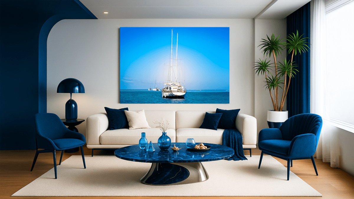 Repos au Large vous transporte vers la douceur d’un voilier ancré sur une mer d’un bleu profond, sous un ciel clair et vaste. Cette œuvre, réalisée sur aluminium, capture un moment de calme et de beauté naturelle, parfaite pour une déco mural empreinte de sérénité. Les teintes apaisantes et les lignes élégantes des mâts évoquent la liberté des horizons marins, offrant une touche d’authenticité à votre intérieur.
