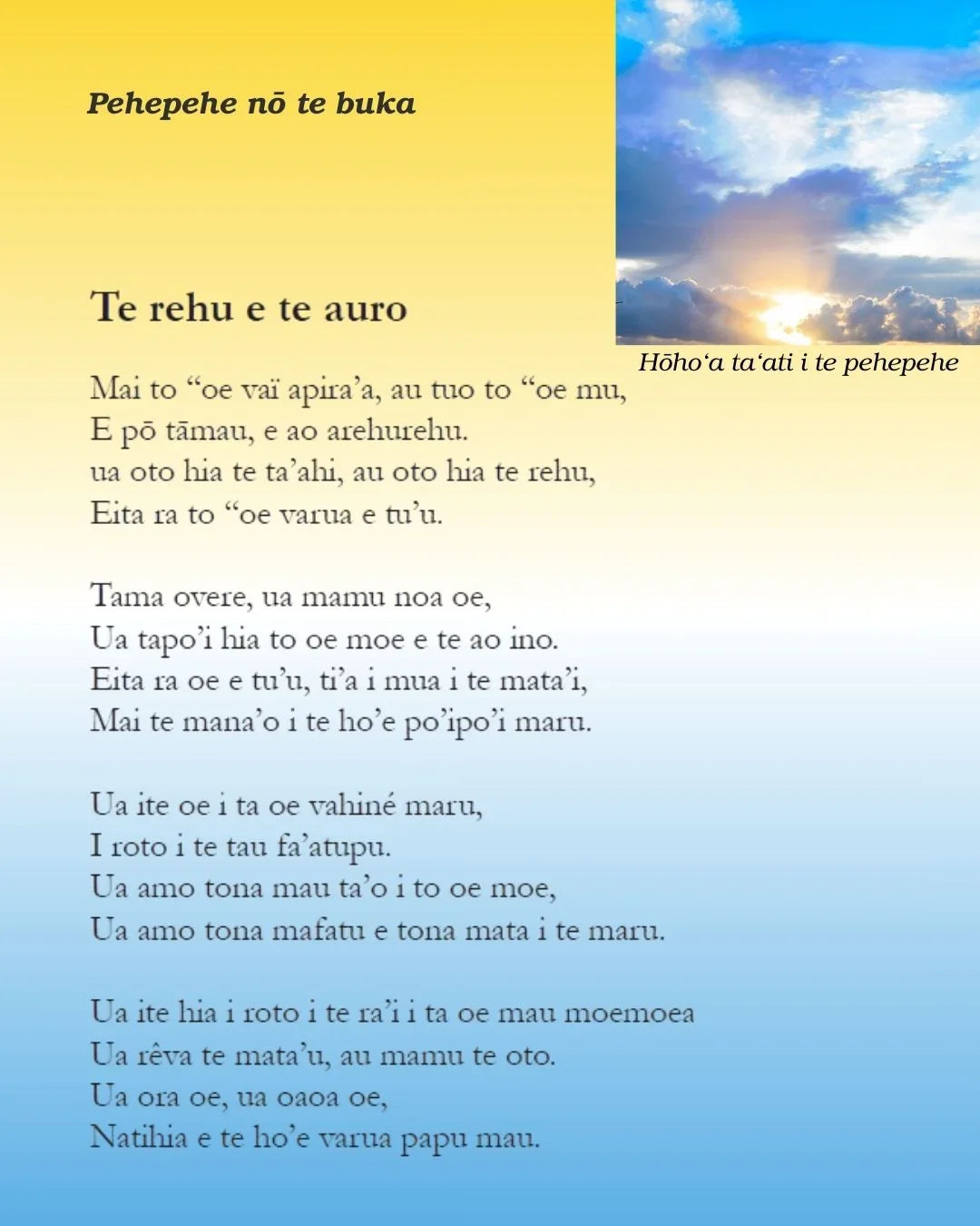 Te puka nei e ha‘api‘i i te nehenehe o te ao nei na roto i te poesia ataata — e riro te hoho‘a ei parau, e riro te orero ei hi‘o.