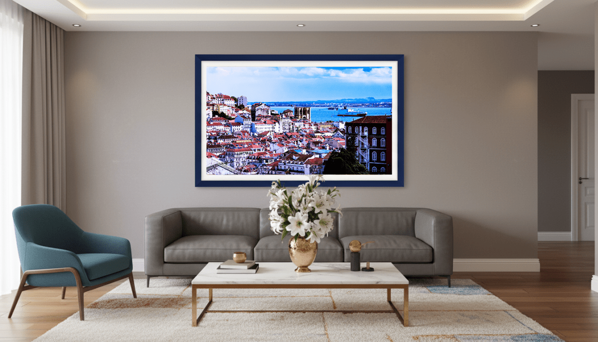 Ce tirage photo Fine Art avec texture, Orange et Eau Vive, met en scène une ville baignée de lumière, où les toits orangés contrastent avec l’intensité du bleu marin. La texture du papier enrichit les nuances et donne un caractère authentique à la scène.
