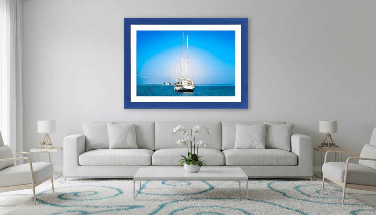 Ce tirage photo Fuji Crystal, Repos au Large, immortalise la quiétude d’un voilier flottant sur une mer calme. Le procédé Fuji Crystal sublime les reflets aquatiques et la pureté du ciel pour une œuvre éclatante.