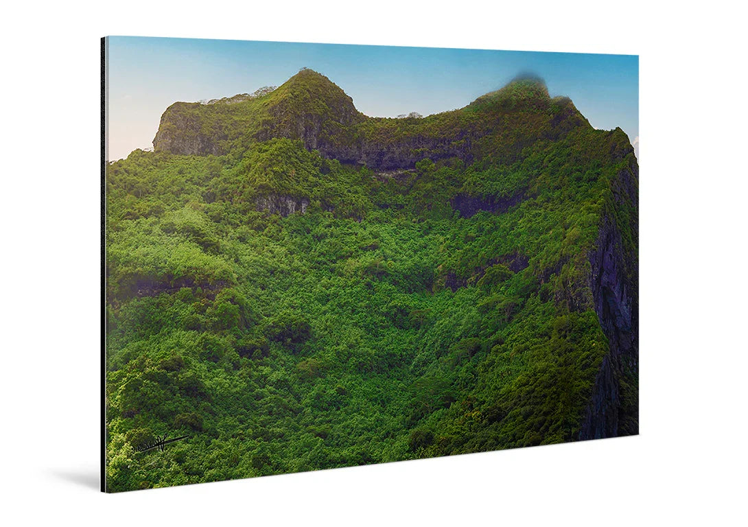 Avec Forêt des Hauteurs sur plexiglas, chaque nuance de vert et chaque rayon de lumière prennent vie grâce à la surface brillante du support. Les collines et la dense forêt luxuriante sont sublimées par l’éclat du plexiglas, créant un tableau mural immersif et poétique qui invite à la méditation et à la détente.