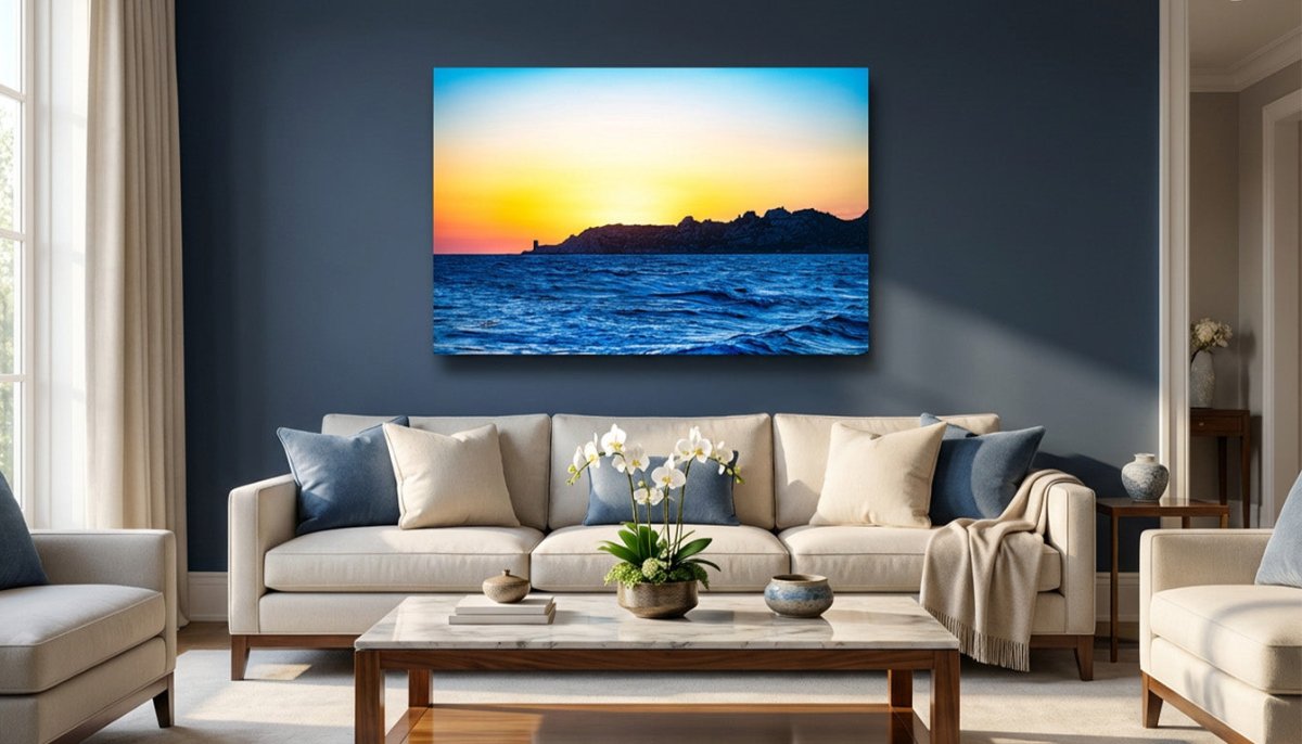 Dieses moderne und leuchtende Wandbild verwandelt Ihre Wände in ein offenes Fenster zum Meer, das Poesie, Ruhe und Zeitgemäßheit verbindet. Die Farbintensität und die Transparenz des Plexiglases vermitteln ein Gefühl von Ruhe und zugleich Bewegung – ideal für ein Wohnzimmer, Schlafzimmer oder Arbeitszimmer, in dem eine beruhigende und inspirierende Atmosphäre geschaffen werden soll.