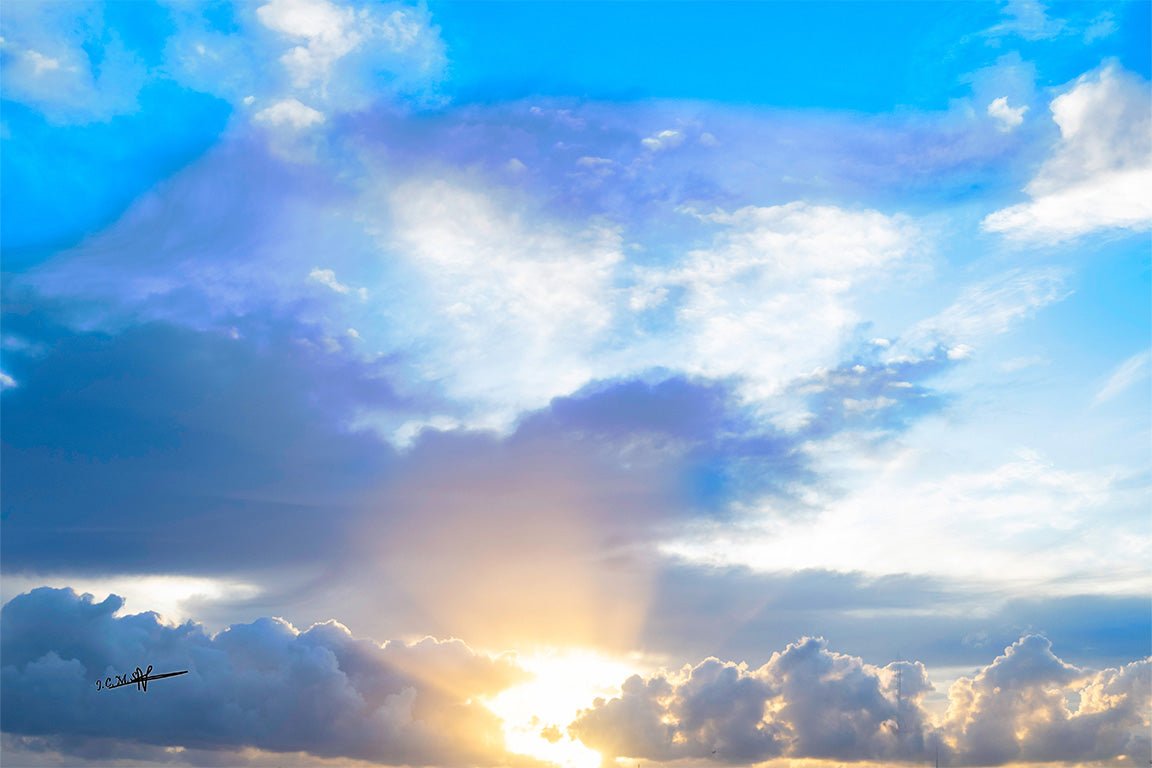 Ce tirage photo Fuji Crystal, L’Éclat du Haut, capture la naissance de la lumière à travers les nuages. Les rayons du soleil percent l’horizon dans une composition pleine de douceur et de puissance à la fois. Le procédé Fuji Crystal sublime les contrastes entre les bleus du ciel et les ors du matin, pour une image éclatante et pure.