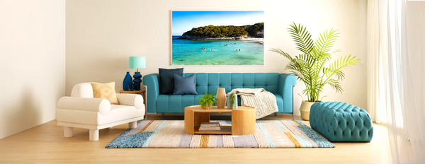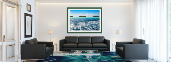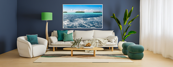Les tirages de mer, de plages paradisiaques ou de ciels tropicaux sont parfaits pour créer une ambiance relaxante et lumineuse.