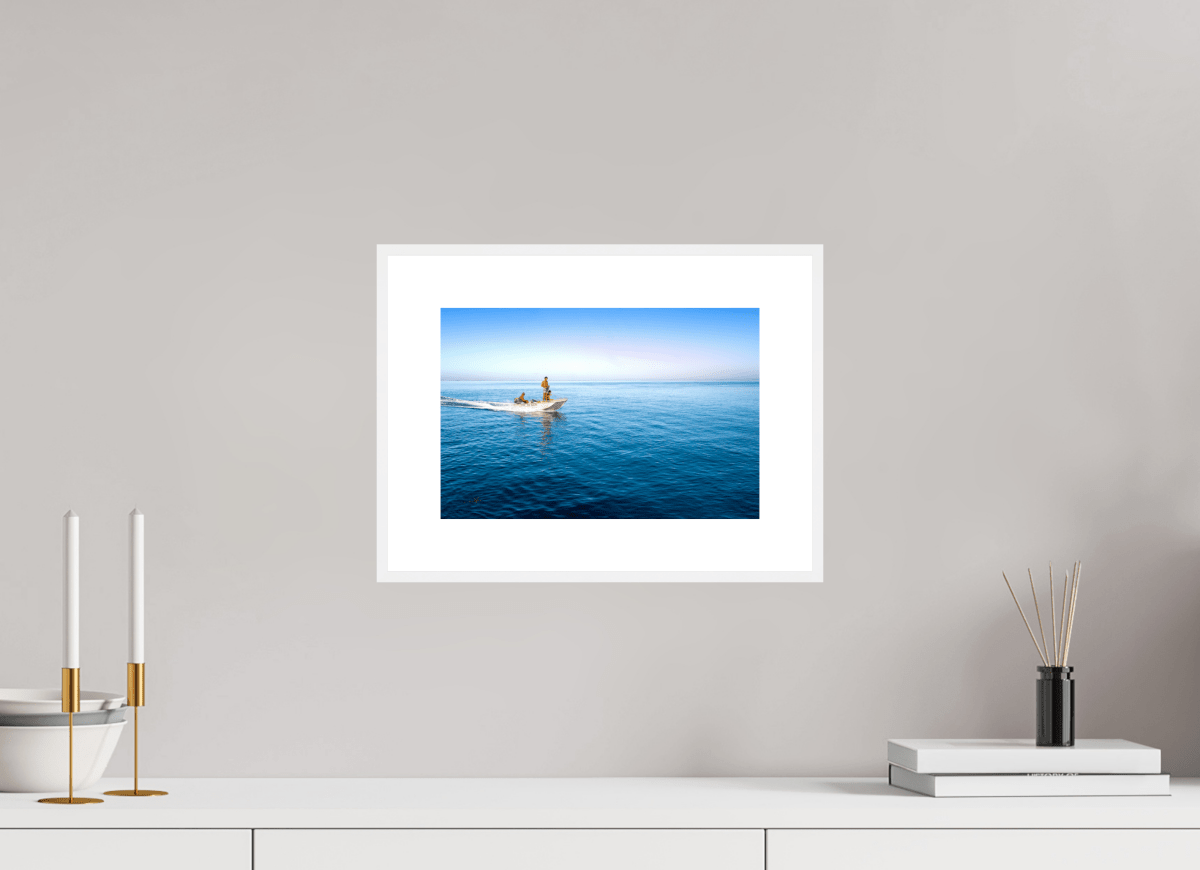 Le tirage photo Fuji Crystal avec cadre, Petite Traversée, évoque la liberté du grand large. L’encadrement souligne la finesse des reflets marins et la douceur du ciel pour une pièce décorative élégante et apaisante.