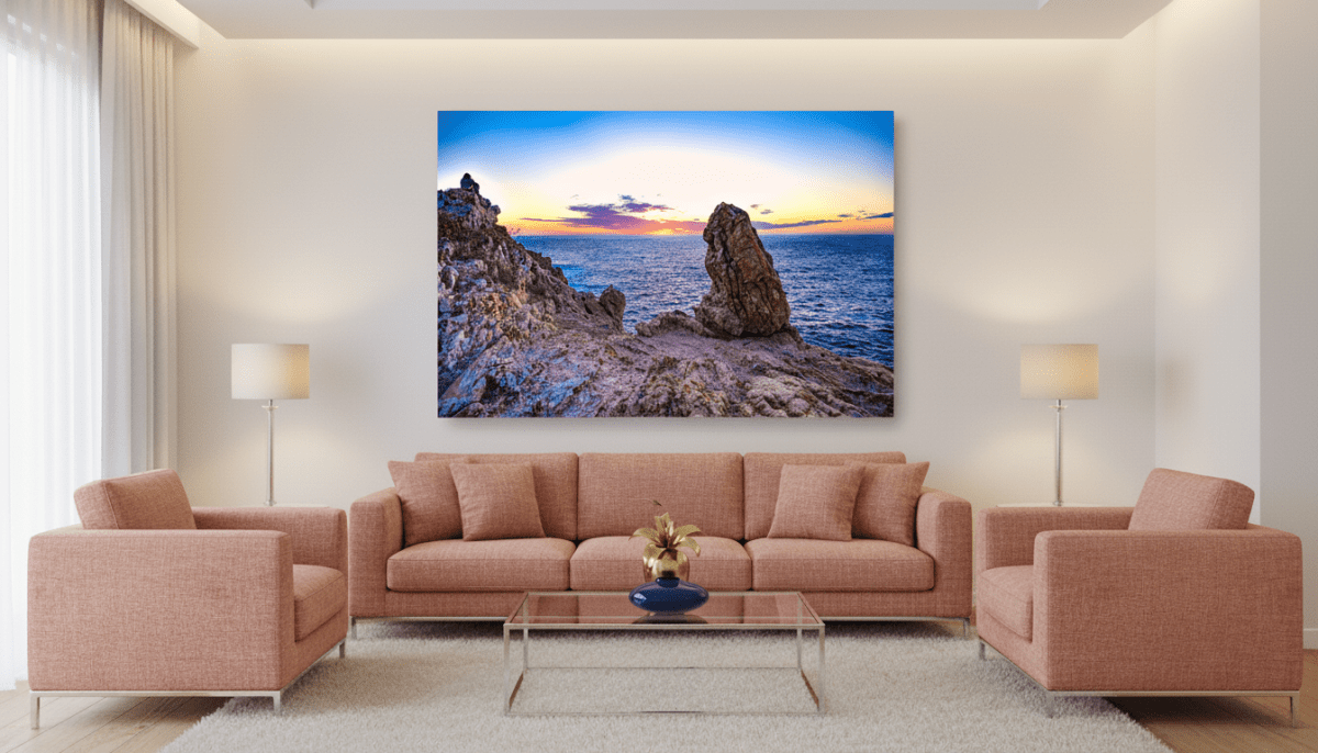 La toile embrase la lumière dorée d’un coucher de soleil, où Soupir Doré s’épanouit comme un tableau décoratif mural, illuminant falaises et mer d’une intensité presque sacrée. Les reflets chatoyants, tissés dans la trame de la toile, donnent à cette scène côtière une profondeur vibrante, comme si elle flottait dans un souffle d’éternité sous vos yeux. Chaque nuance peinturée offre une décoration intérieure à la fois captivante et raffinée.