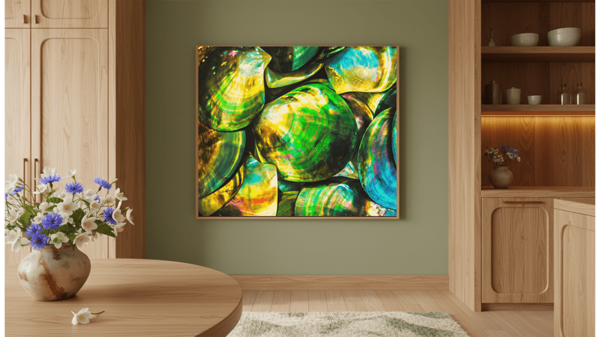 Dans un salon cosy, une chambre inspirante ou un bureau zen, cette œuvre apporte une ambiance naturelle et chaleureuse. Les formes arrondies des coquillages et la richesse des couleurs se fondent avec les fibres du bois, créant un effet organique et apaisant.